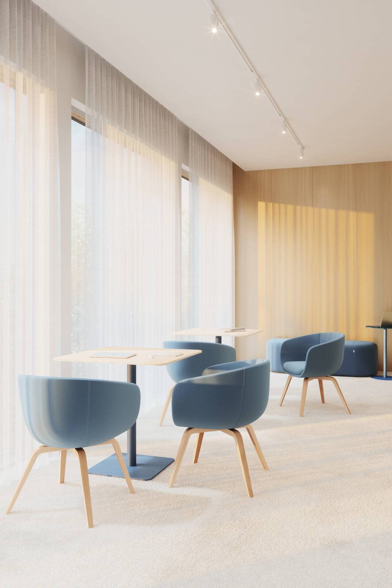Stolička Nu svojimi správnymi proporciami a kompaktnou veľkosťou, dodáva interiéru eleganciu. Je vyrábaná z najkvalitnejších materiálov. Je praktická v kanceláriách, rokovacích a oddychových priestoroch aj v hotelových halách.