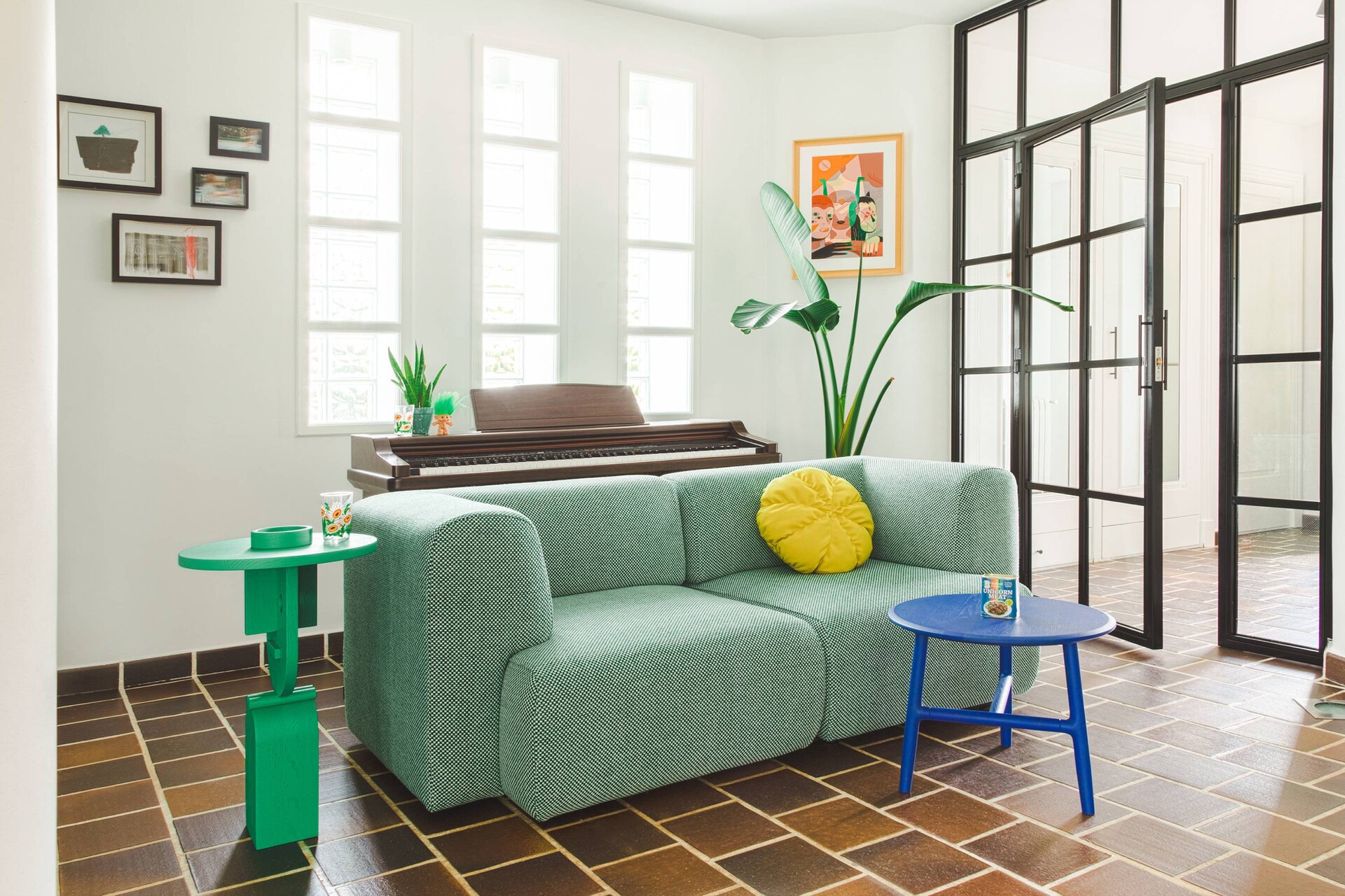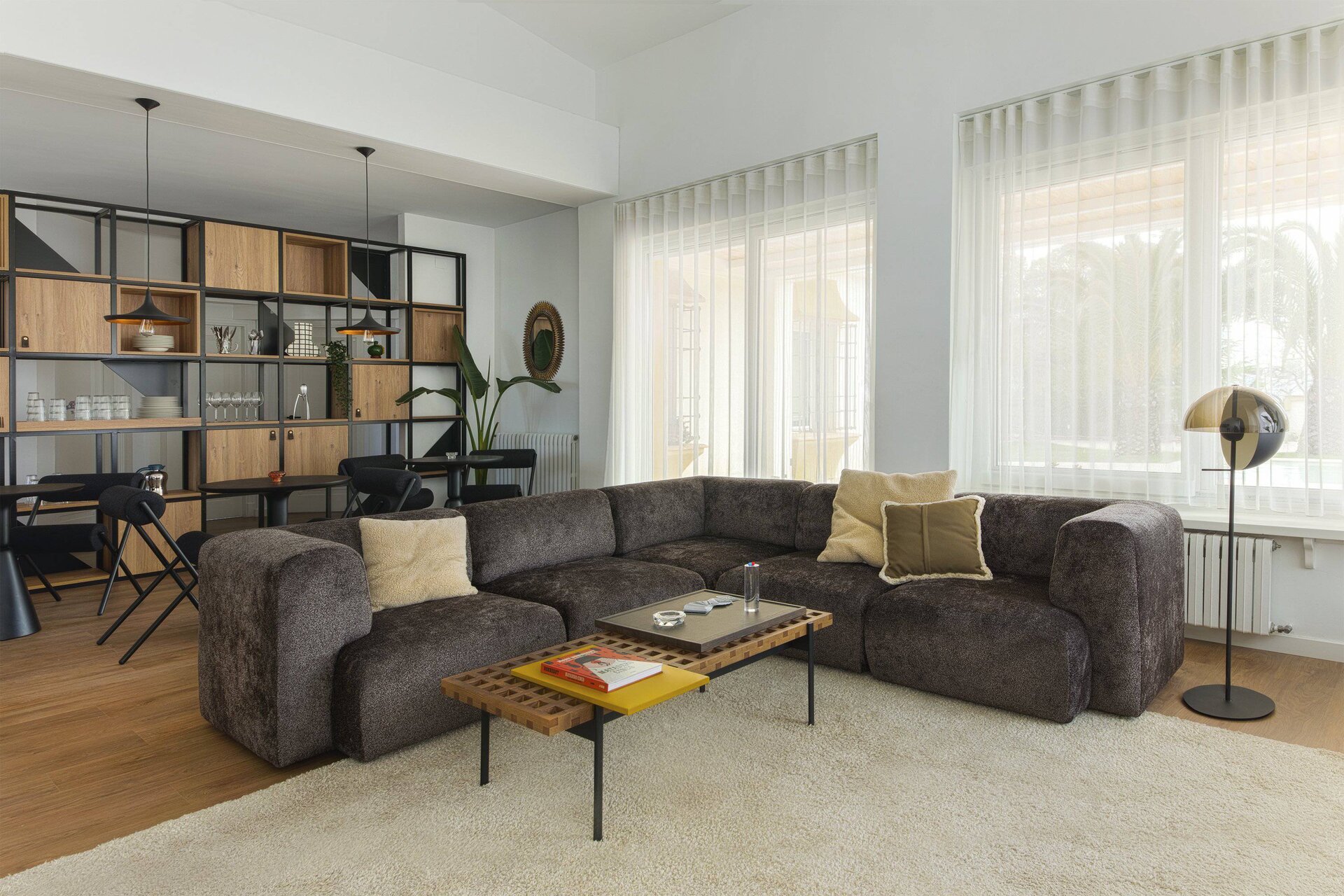 Hlboké sedadlo sedačky Duo umožňuje hravé použitie roztrúsených vankúšov alebo dokonca ďalších operadlových vankúšov. K dispozícii sú dve veľkosti hĺbky sedadla, a to model Duo Mini a Duo Maxi. Jej modulárny charakter zabezpečí, že sa dynamicky prispôsobí potrebám akéhokoľvek kancelárskeho priestoru alebo bytového interiéru.