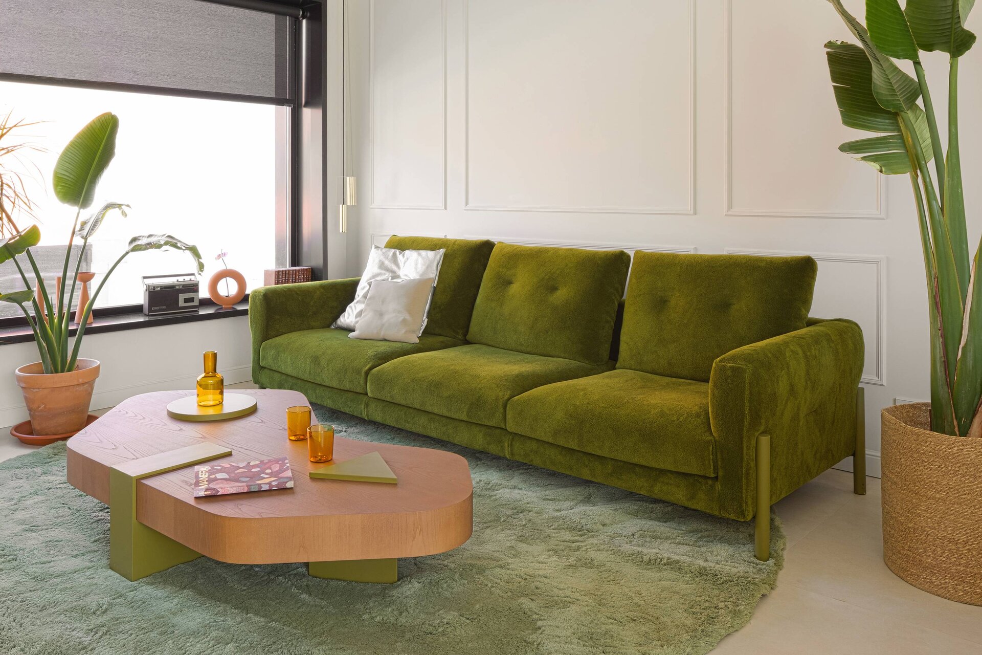 Sedačky Momic predstavujú rozsiahly variabilný systém. K dispozícii sú dve veľkosti sedadiel, ktoré sú východiskovým bodom pre vytvorenie 2- a 3-miestnych sedačiek, modulov s podrúčkami alebo bez nich, rôznych možností ležadla, pufov, koncových dielov a modulov s uhlom 45°, ktoré dodávajú tvar všetkým druhom kompozícií. Ústredným prvkom každého modulu sú robustné nohy z jaseňového dreva, ktoré rámujú kľukaté línie podrúčok. Moderný dizajn sedačiek Momic sa prispôsobí malým priestorom aj veľkým otvoreným dispozíciám.